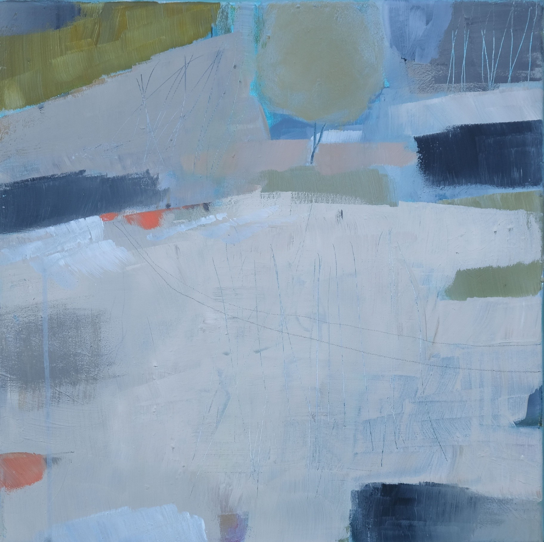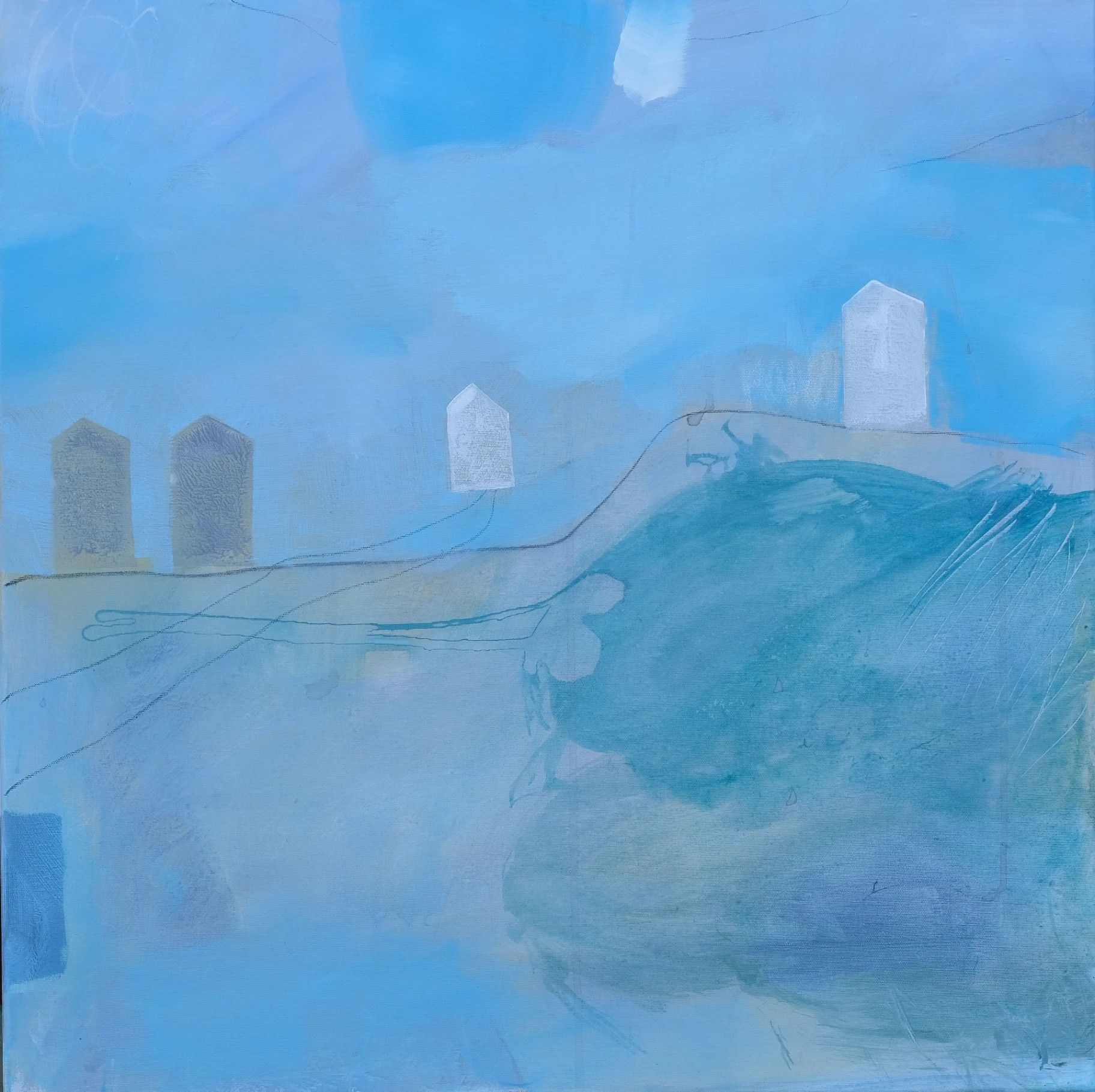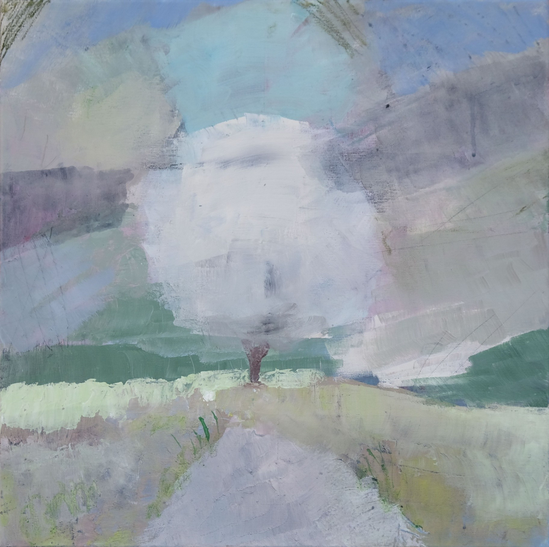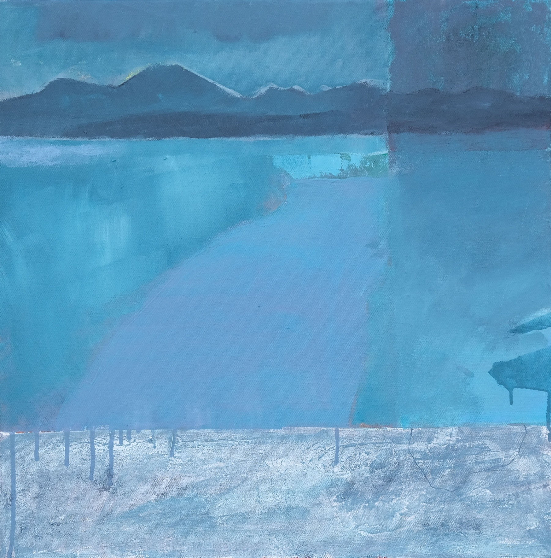 After returning from India in 2020, Branka felt the need to finally rest after rushing around the world, and that meant returning to places and addresses that are close to her and that have constantly inspired her with their beauty. It was no coincidence that she spent moments of solitude and meditation with the poetry of Nobel laureate Eugenio Montale, who scans human anxiety and the misfortune of modern man who sees salvation in escape... The landscapes that Branka paints are an expression of a nostalgic feeling, as if beloved places were emerging from the darkness of the past, islands with nameless bays and vegetation of miraculous white trees that symbolically sing about a different spiritual life. Once interesting landscapes of contrasting acrylic colors, now swim in a gloomy atmosphere around the island, revealing through the mists, in never-before-seen bays, distant houses, miraculous trees and the polyphonic dark splendor of the play of contrasts of the blue-gray and green-blue color of the sea. Using the example of a visit to her beloved island, Branka Ridicki managed to present a now open lyrical approach to abstract painting with a complex understanding of reality with deposits of memories and emotions.